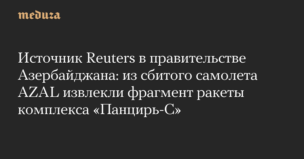 Источник Reuters в правительстве Азербайджана: из сбитого самолета AZAL извлекли фрагмент ракеты комплекса «Панцирь-С»