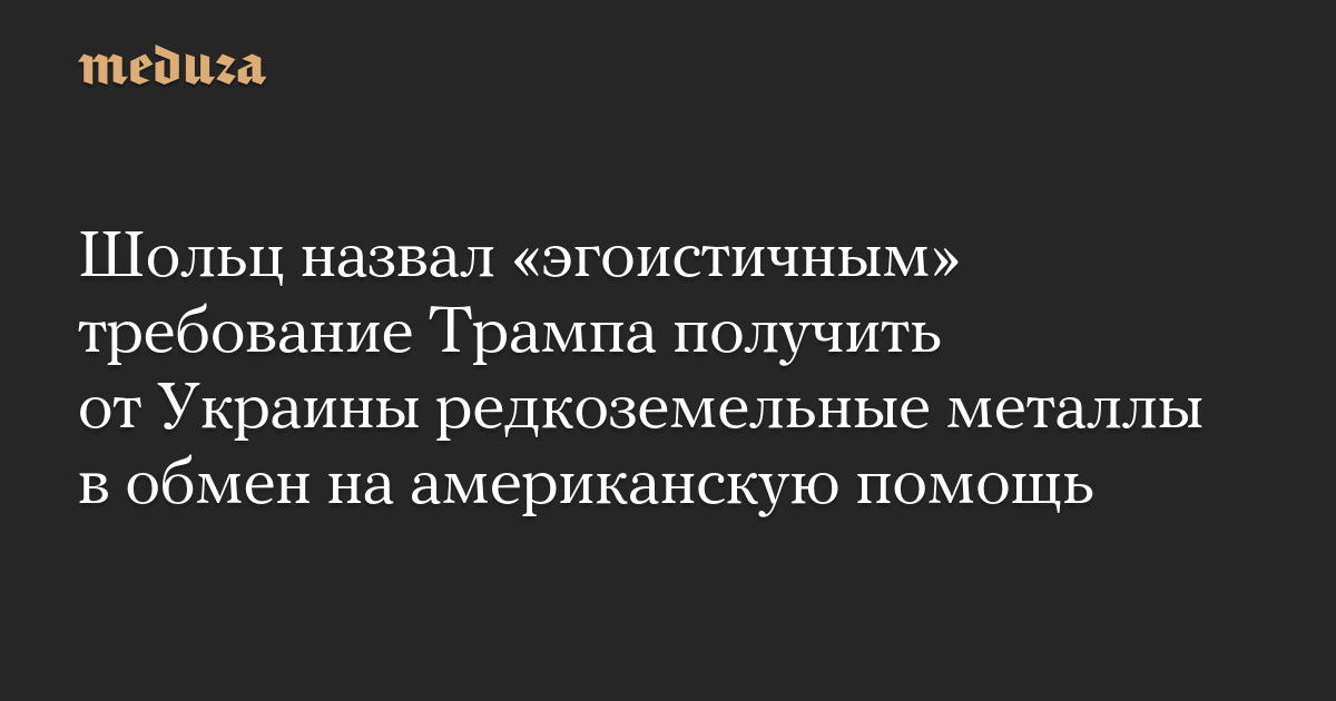 Шольц назвал «эгоистичным» требование Трампа получить от Украины редкоземельные металлы в обмен на американскую помощь