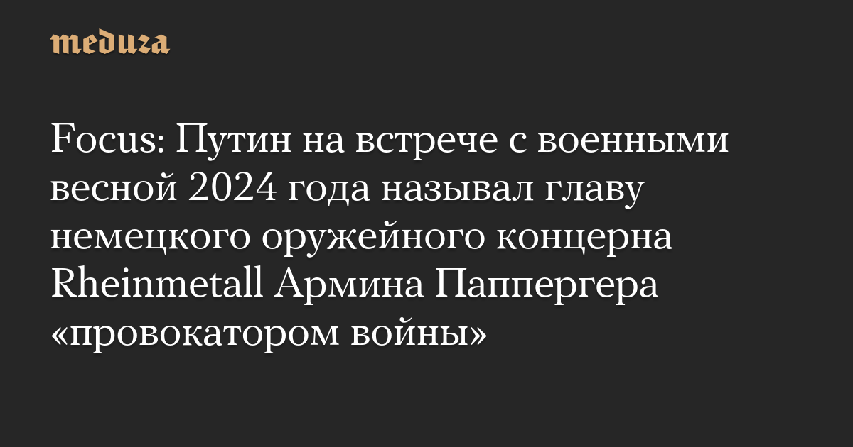 Focus: Путин на встрече с военными весной 2024 года называл главу немецкого оружейного концерна Rheinmetall Армина Паппергера «провокатором войны»