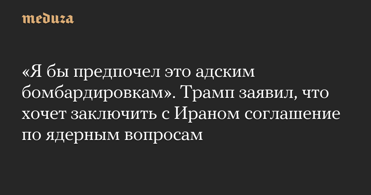 «Я бы предпочел это адским бомбардировкам». Трамп заявил, что хочет заключить с Ираном соглашение по ядерным вопросам