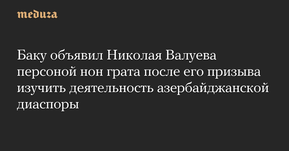 «Но вот чем Россотрудничество не угодило? А это все из „дрючбы народов“, сфер влияния и про пантюркизм. Беспокойство, так сказать, за чистоту отношений. Насколько известно в России нет такой структуры что-то типа Азерсотрудничества. Зато есть многочисленные „диаспоры“. И эти диаспоры не про культурный обмен. Скорее про деньги. И очень большие. Крайне необходимые не только в России, но и на исторической Родине. И далеко не всегда деньги легальные, как бы так аккуратно выразиться. Не пришло ли время присмотреться к ним еще внимательнее. К диаспорам конечно», — написал Валуев (орфография автора сохранена).