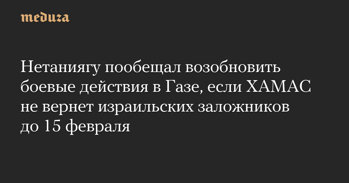 Премьер-министр Израиля не уточнил, сколько заложников должна освободить группировка. The Times of Israel отмечает, что по условиям мирного соглашения в субботу должны быть освобождены трое израильских заложников. Источник издания ранее сообщал, что речь может идти об освобождении к 15 февраля девяти заложников.