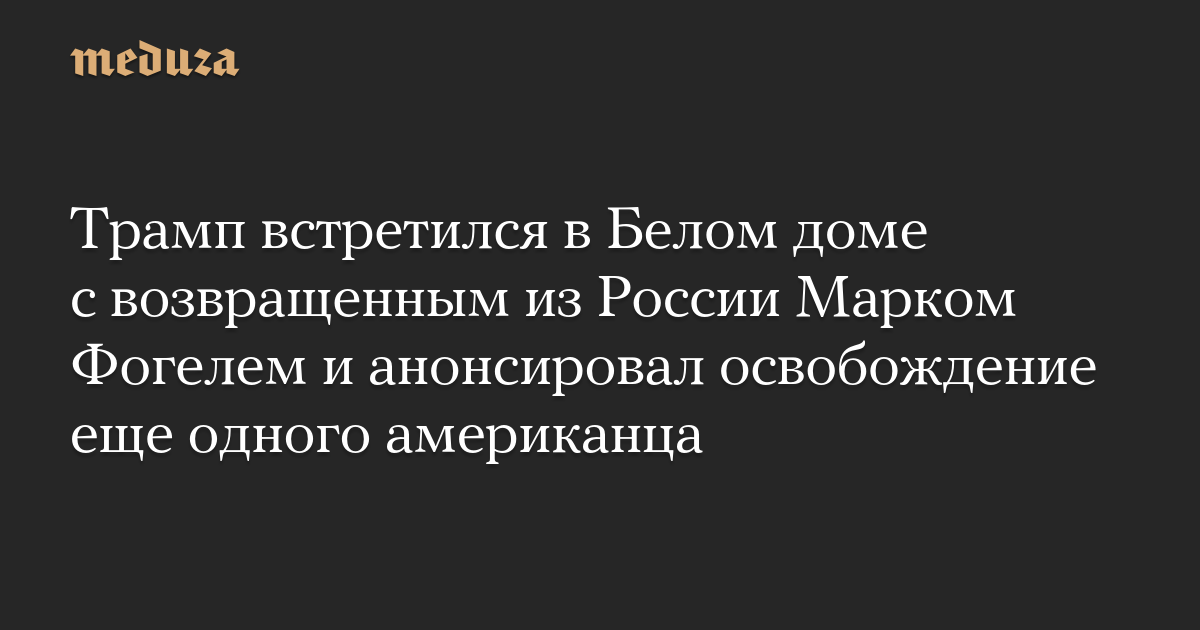 Президент США Дональд Трамп принял в Белом доме Марка Фогеля — бывшего сотрудника посольства США в Москве и преподавателя Англо-американской школы, приговоренного в России к 14 годам тюрьмы по обвинению в контрабанде наркотиков.