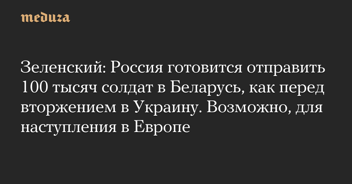 Зеленский: Россия готовится отправить 100 тысяч солдат в Беларусь, как перед вторжением в Украину. Возможно, для наступления в Европе