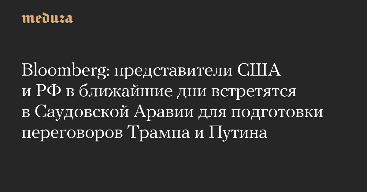 Bloomberg: представители США и РФ в ближайшие дни встретятся в Саудовской Аравии для подготовки переговоров Трампа и Путина