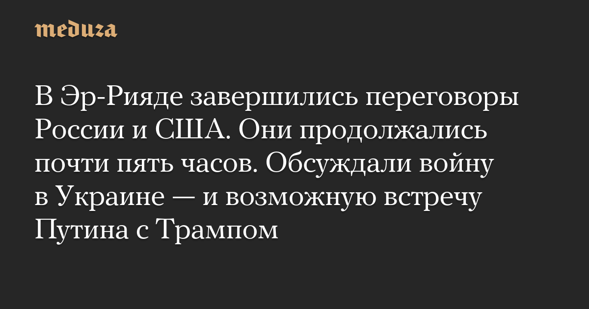 В Эр-Рияде завершились переговоры России и США. Они продолжались почти пять часов. Обсуждали войну в Украине — и возможную встречу Путина с Трампом