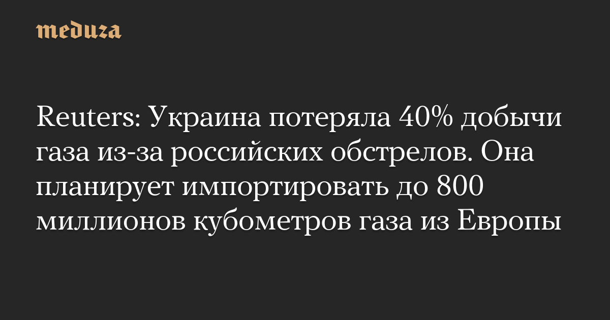 Reuters: Украина потеряла 40% добычи газа из-за российских обстрелов. Она планирует импортировать до 800 миллионов кубометров газа из Европы