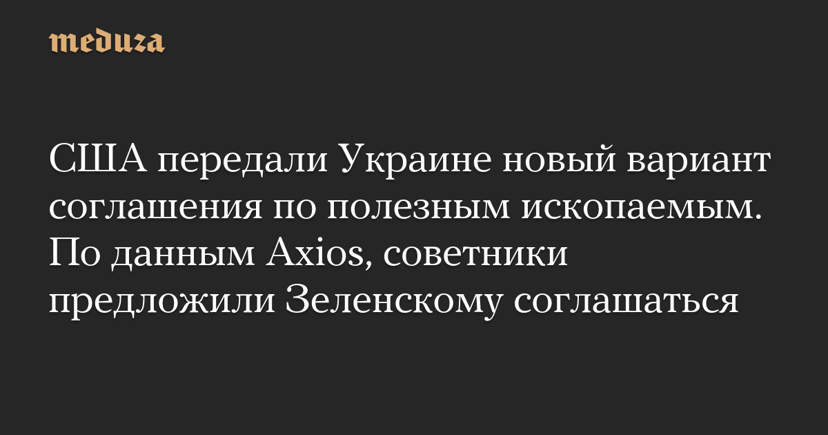 США передали Украине новый вариант соглашения по полезным ископаемым. По данным Axios, советники предложили Зеленскому соглашаться