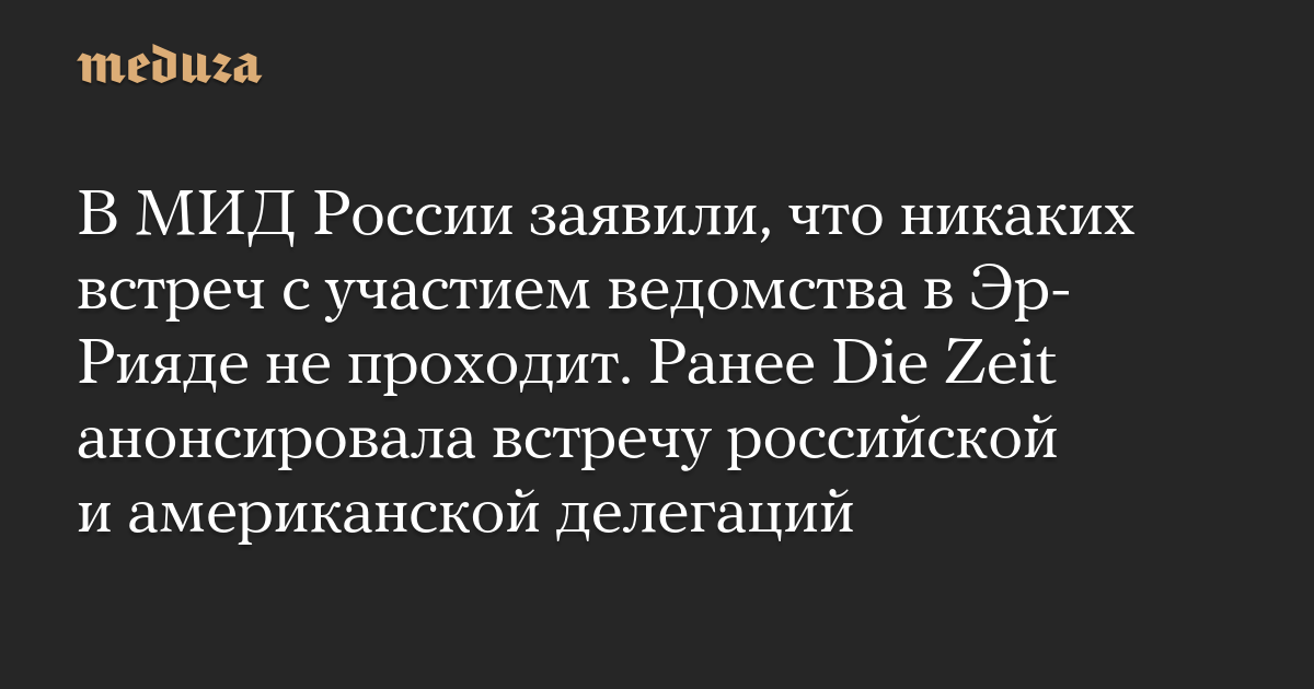 В МИД России заявили, что никаких встреч с участием ведомства в Эр-Рияде не проходит. Ранее Die Zeit анонсировала встречу российской и американской делегаций