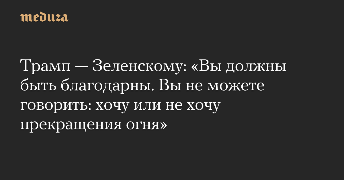«Вы должны быть благодарны. Люди умирают, у вас не хватает военных. Вы не можете нам говорить, я хочу или не хочу прекращения огня», — сказал Трамп.
