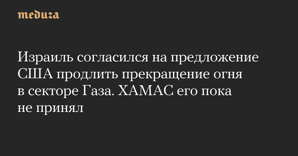 Израиль согласился на предложение США продлить прекращение огня в секторе Газа. ХАМАС его пока не принял