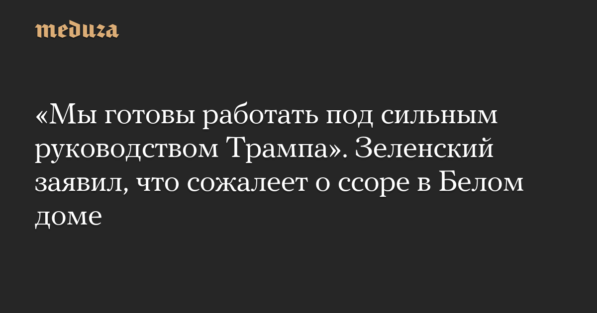 «Мы готовы работать под сильным руководством Трампа». Зеленский заявил, что сожалеет о ссоре в Белом доме