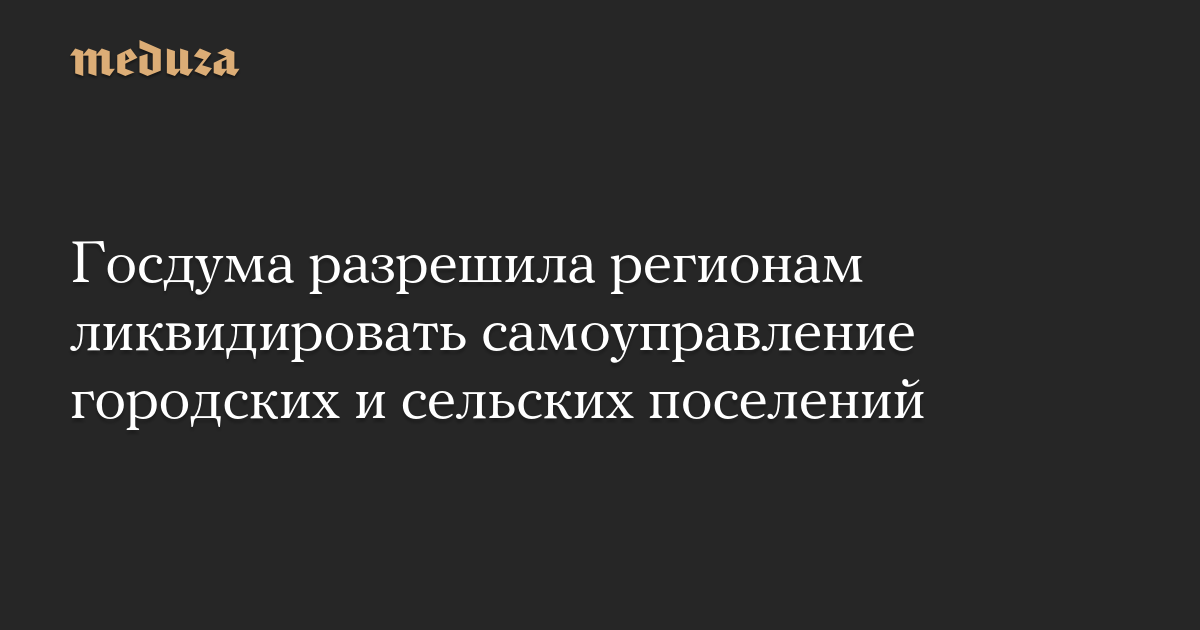 Госдума разрешила регионам ликвидировать самоуправление городских и сельских поселений