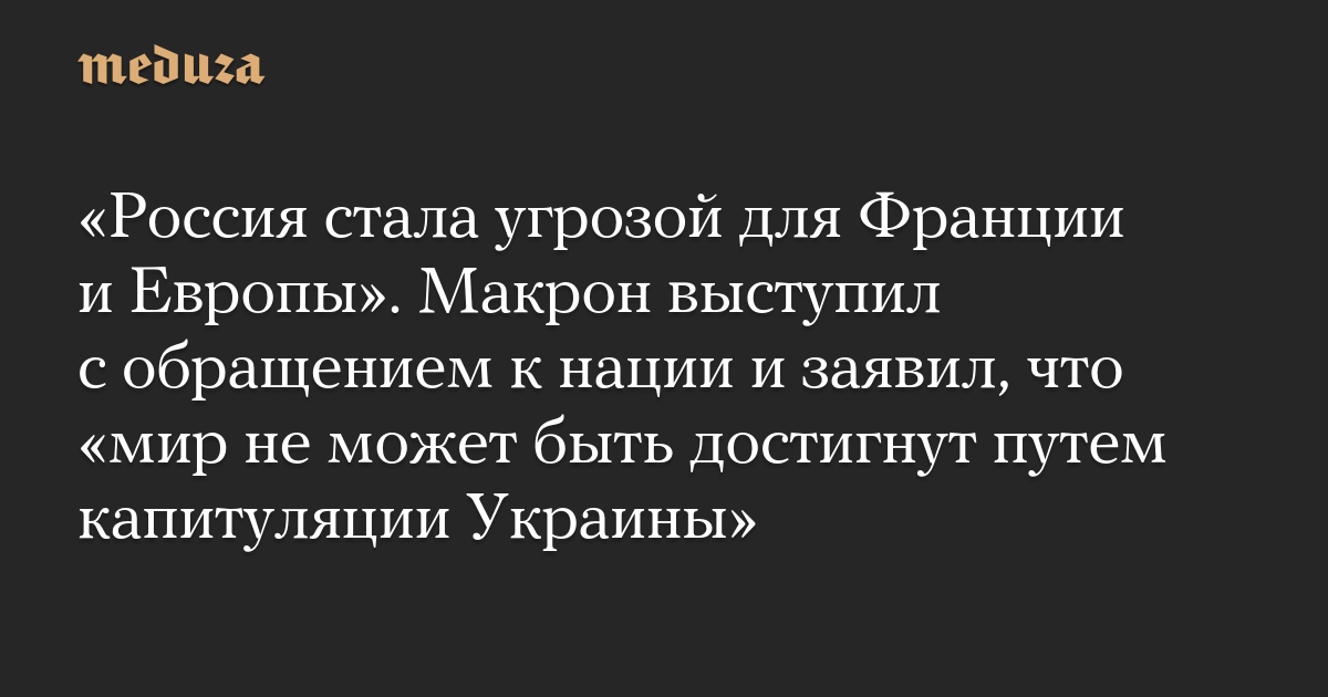«Россия стала угрозой для Франции и Европы». Макрон выступил с обращением к нации и заявил, что «мир не может быть достигнут путем капитуляции Украины»