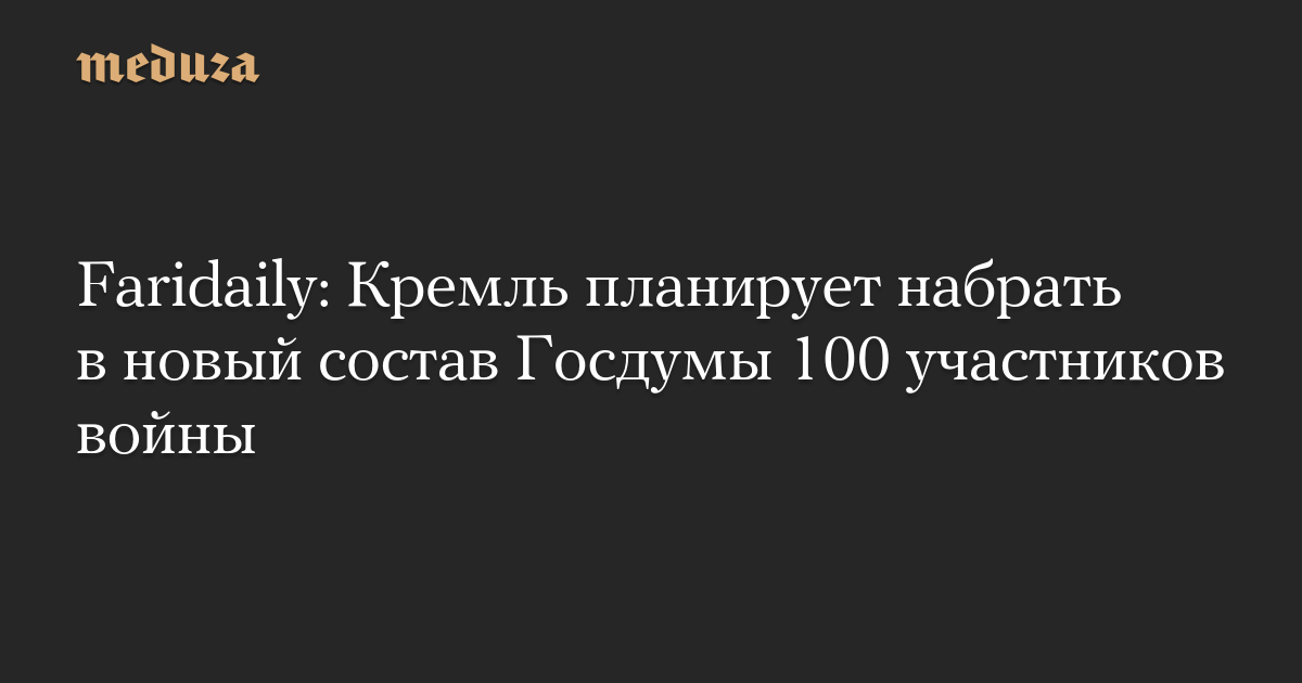 Faridaily: Кремль планирует набрать в новый состав Госдумы 100 участников войны