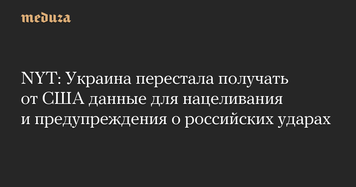 NYT: Украина перестала получать от США данные для нацеливания и предупреждения о российских ударах