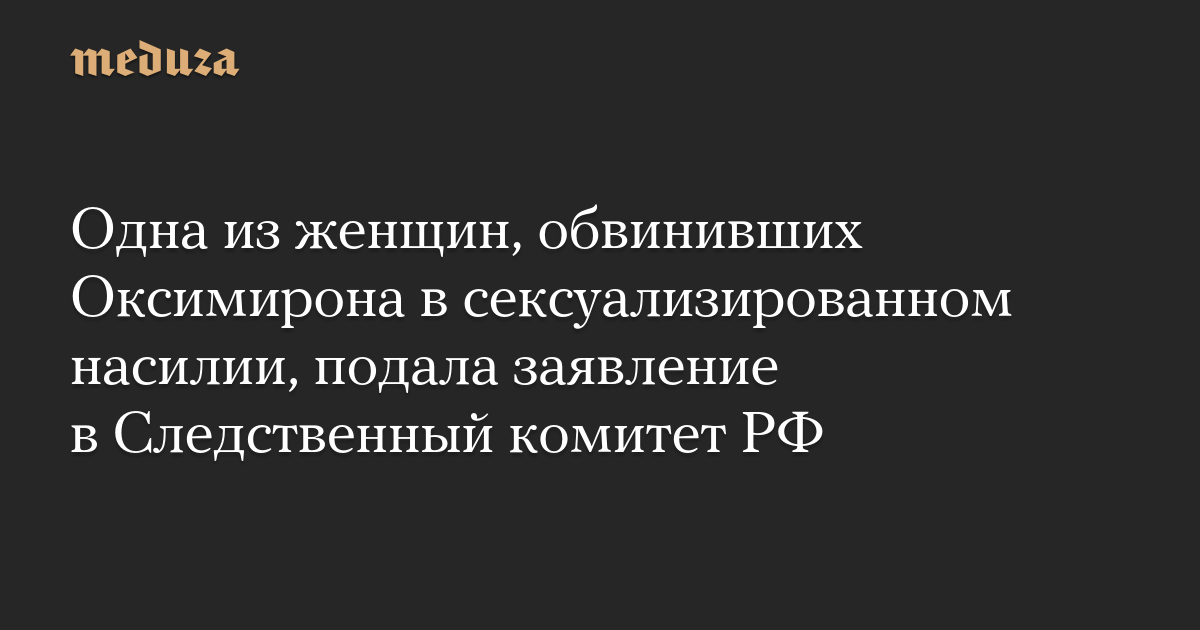 Одна из женщин, обвинивших Оксимирона в сексуализированном насилии, подала заявление в Следственный комитет РФ