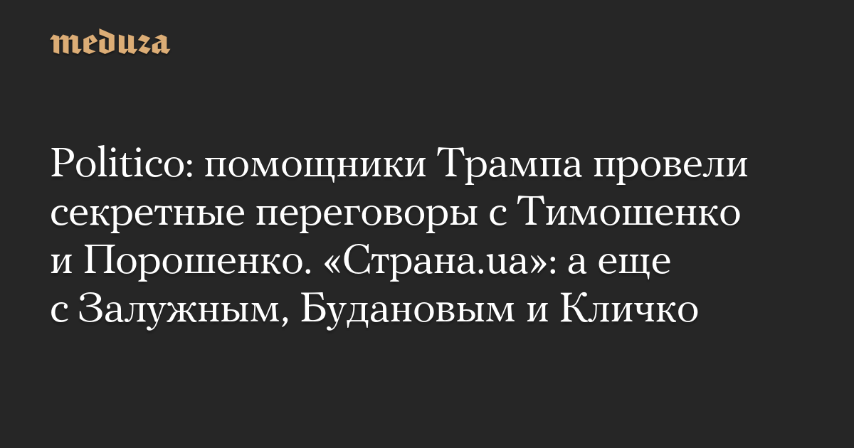 Обновление. Источники «Страны.ua» утверждают, что представители Трампа также вели переговоры с бывшим главкомом ВСУ Валерием Залужным, главой Киева Виталием Кличко, начальником украинской разведки Кириллом Будановым, главой фракции «Слуга народа» Давидом Арахамией.