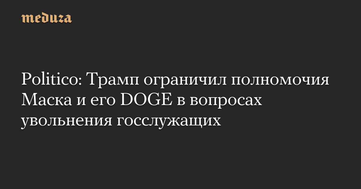 Politico: Трамп ограничил полномочия Маска и его DOGE в вопросах увольнения госслужащих