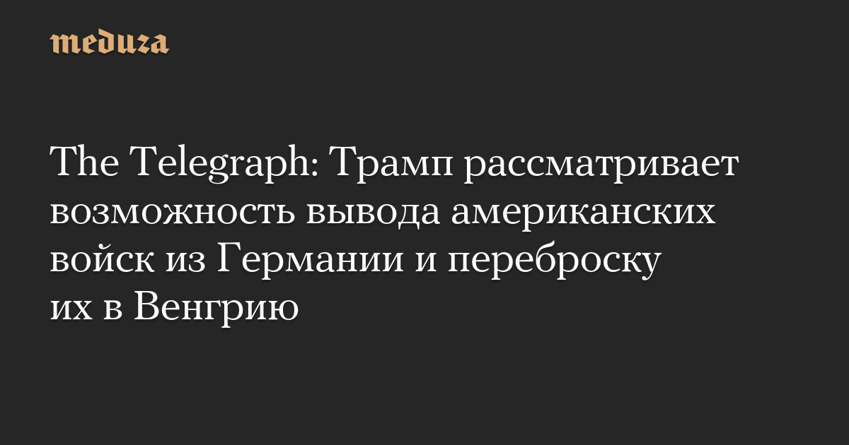 The Telegraph: Трамп рассматривает возможность вывода американских войск из Германии и переброску их в Венгрию