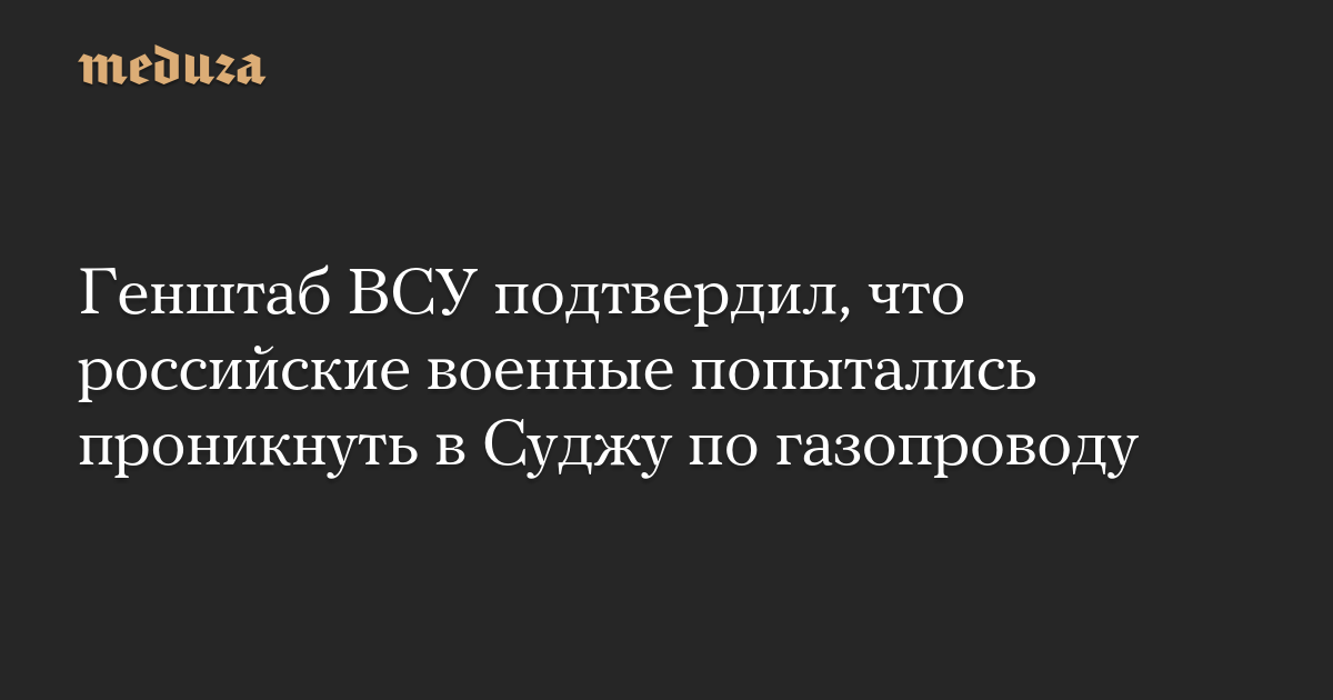 Генштаб ВСУ подтвердил, что российские военные попытались проникнуть в Суджу по газопроводу