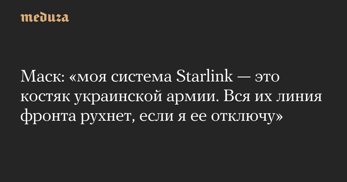Маск: «моя система Starlink — это костяк украинской армии. Вся их линия фронта рухнет, если я ее отключу»