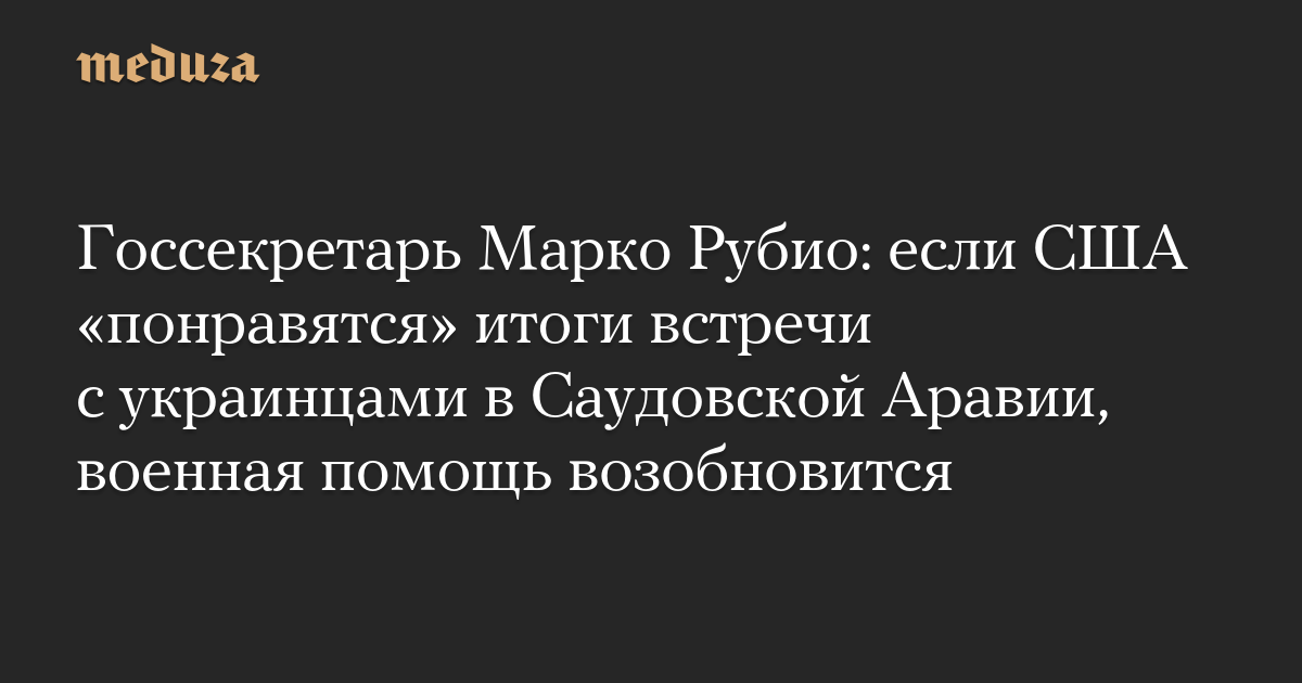 Госсекретарь Марко Рубио: если США «понравятся» итоги встречи с украинцами в Саудовской Аравии, военная помощь возобновится