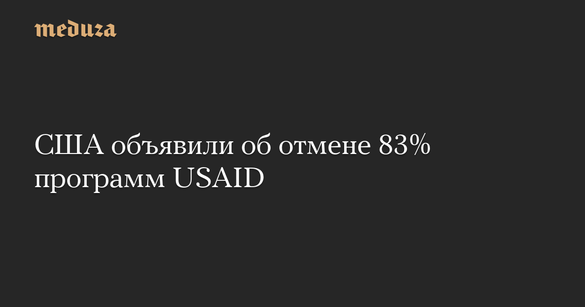 Госсекретарь США Марко Рубио сообщил, что после проведенных проверок Вашингтон отменяет 83% программ Агентства США по международному развитию (USAID).
