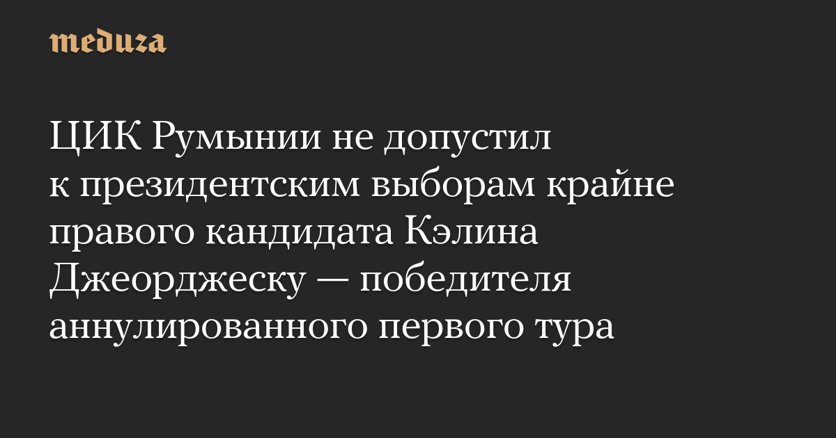 ЦИК Румынии не допустил к президентским выборам крайне правого кандидата Кэлина Джеорджеску — победителя аннулированного первого тура