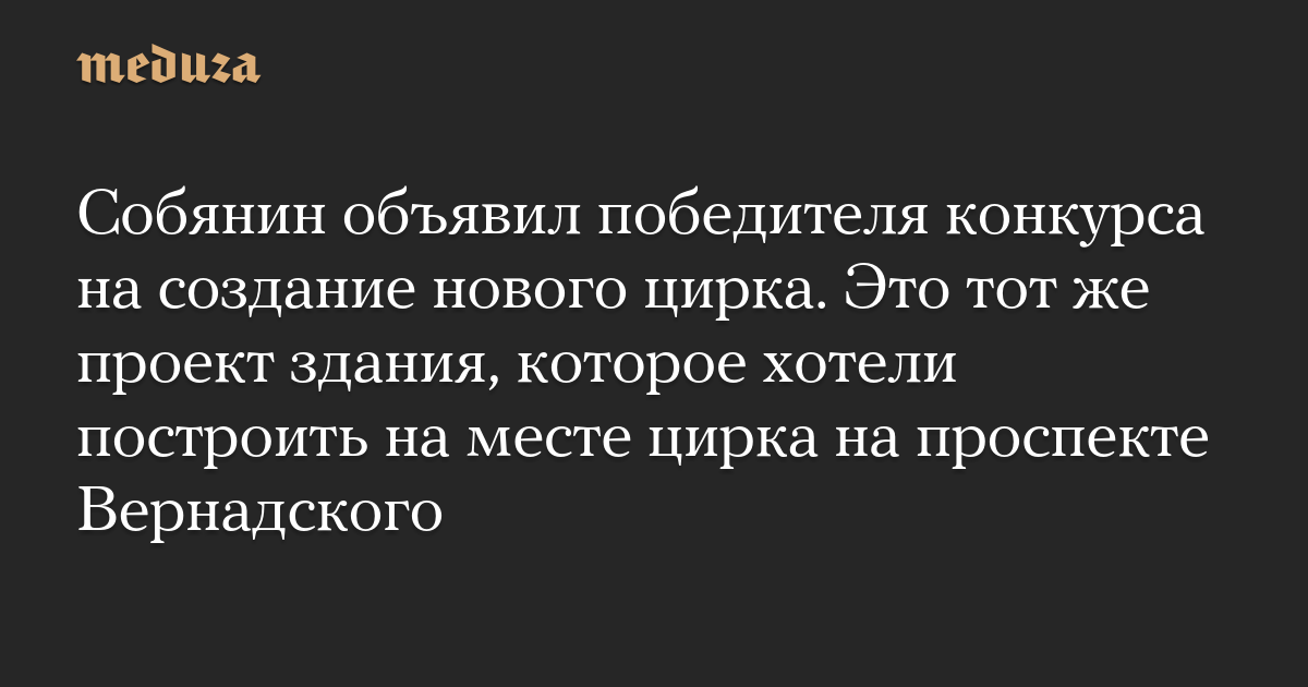 Собянин объявил победителя конкурса на создание нового цирка. Это тот же проект здания, которое хотели построить на месте цирка на проспекте Вернадского