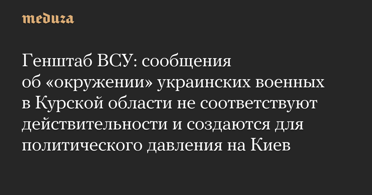 Генштаб ВСУ: сообщения об «окружении» украинских военных в Курской области не соответствуют действительности и создаются для политического давления на Киев