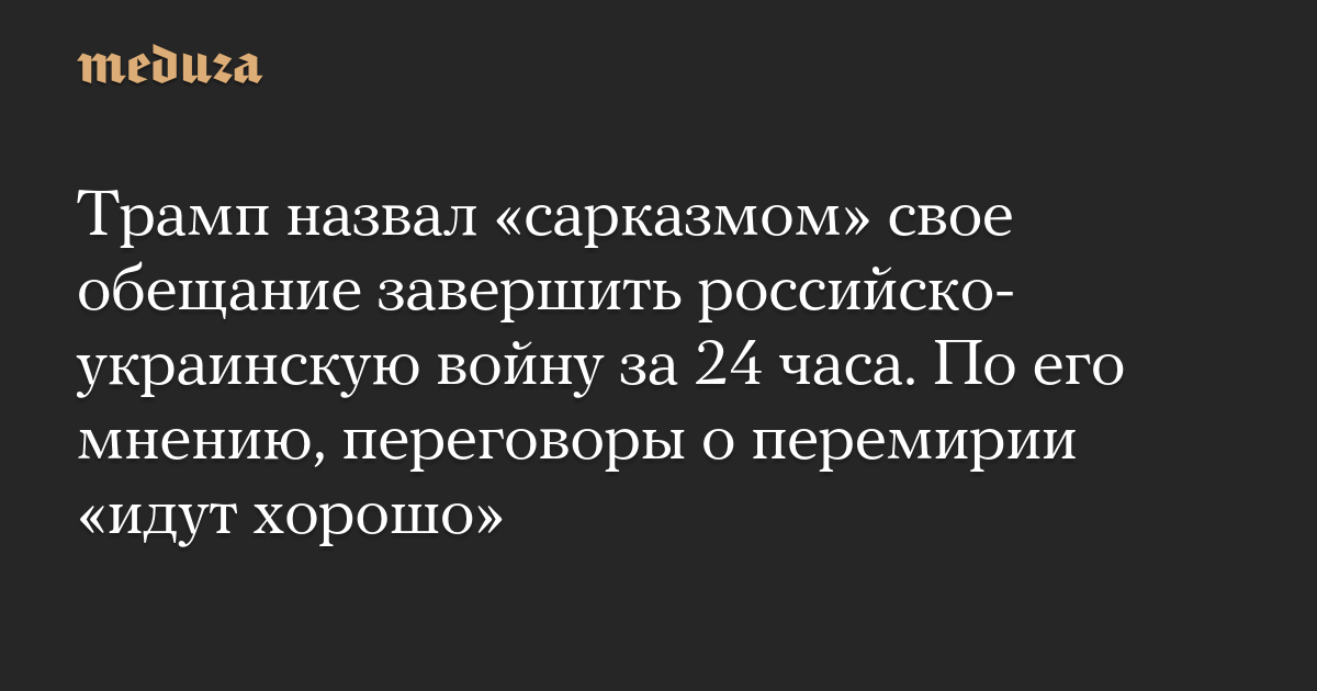 Трамп назвал «сарказмом» свое обещание завершить российско-украинскую войну за 24 часа. По его мнению, переговоры о перемирии «идут хорошо»