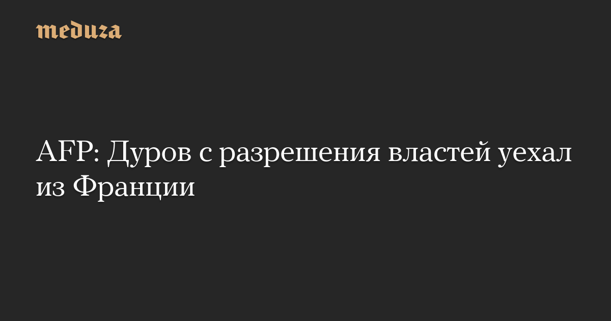 Собеседник агентства заявил, что Дуров уехал с разрешения властей. По словам другого источника, следственный судья разрешил бизнесмену покинуть Францию «на несколько недель». Судья удовлетворил просьбу Дурова об изменении условий его содержания под стражей несколько дней назад, сообщил собеседник агентства, близкий к делу.