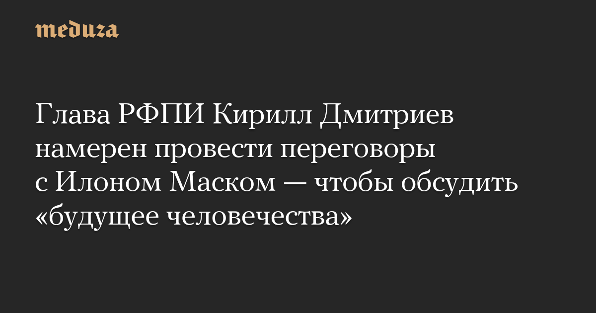 Глава РФПИ Кирилл Дмитриев намерен провести переговоры с Илоном Маском — чтобы обсудить «будущее человечества»