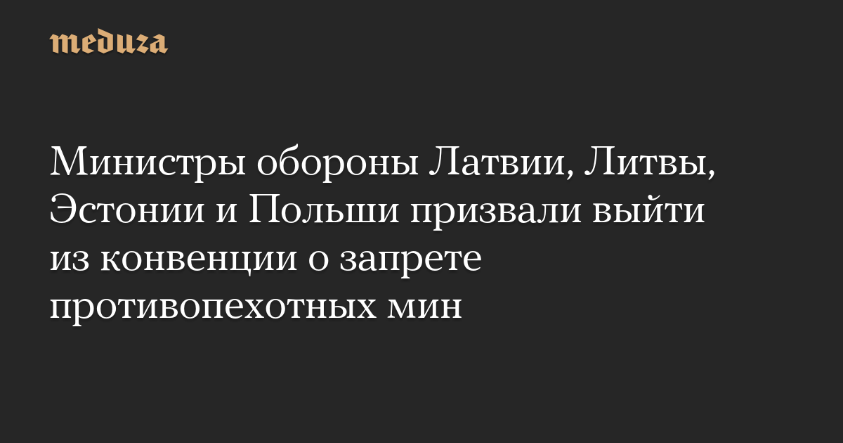 Министры обороны Латвии, Литвы, Эстонии и Польши рекомендовали властям своих стран выйти из Оттавской конвенции о запрете противопехотных мин, говорится в совместном заявлении главы Минобороны этих государств.