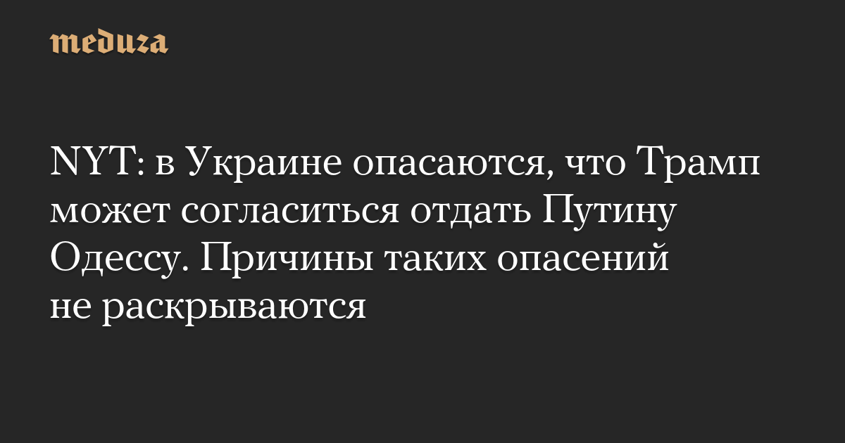 NYT: в Украине опасаются, что Трамп может согласиться отдать Путину Одессу. Причины таких опасений не раскрываются