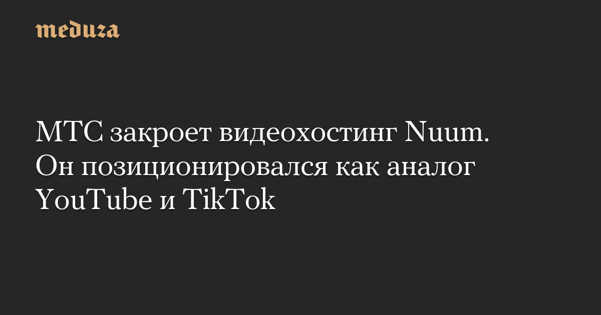 МТС закроет видеохостинг Nuum. Он позиционировался как аналог YouTube и TikTok