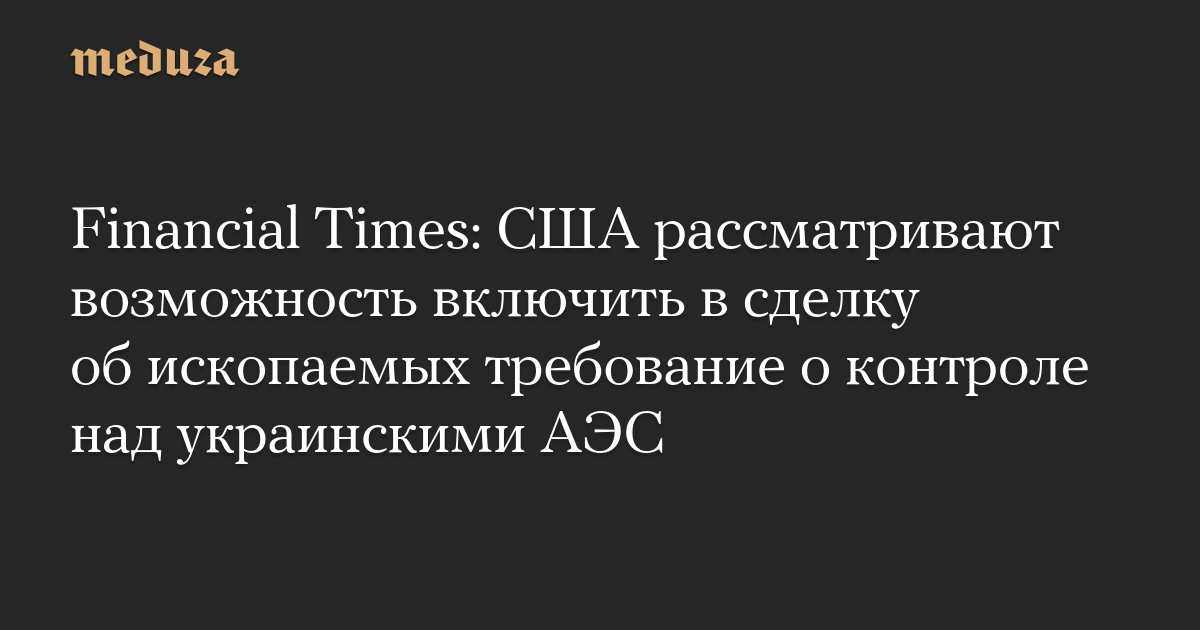 Financial Times: США рассматривают возможность включить в сделку об ископаемых требование о контроле над украинскими АЭС