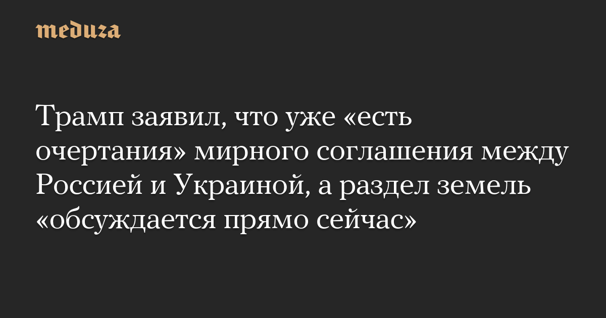 Трамп заявил, что уже «есть очертания» мирного соглашения между Россией и Украиной, а раздел земель «обсуждается прямо сейчас»