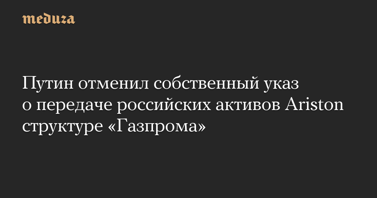 Передать «дочке» «Газпрома» активы ООО «Аристон Термо Русь» Путин распорядился год назад — в апреле 2024 года. Что стало причиной отмены указа, неясно.