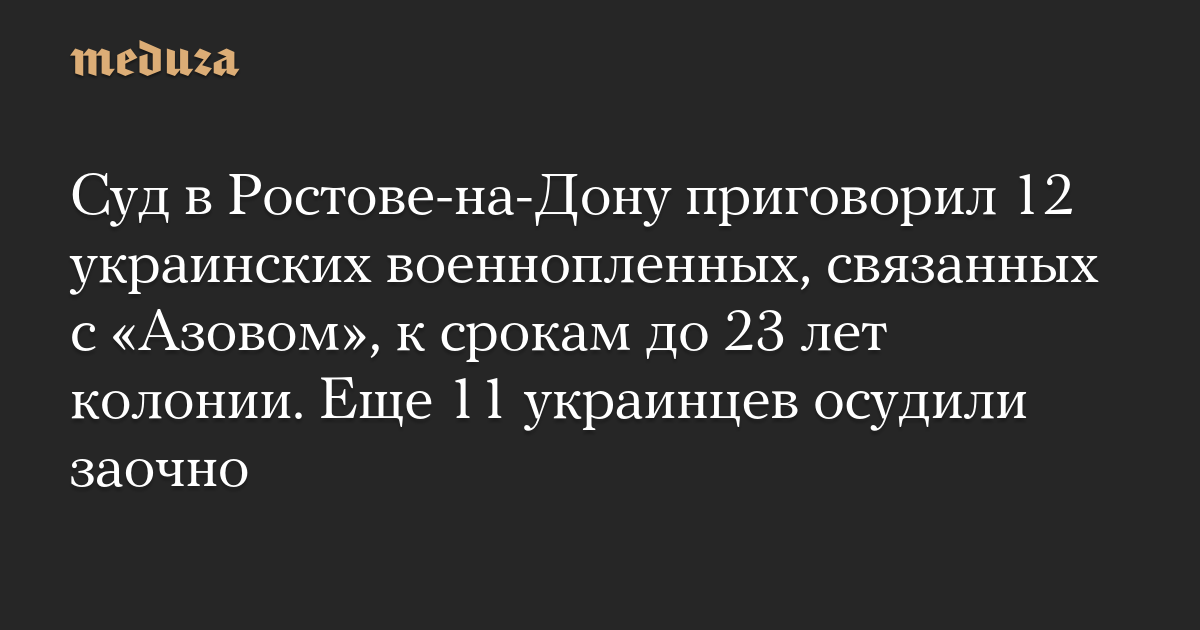 Суд в Ростове-на-Дону приговорил 12 украинских военнопленных, связанных с «Азовом», к срокам до 23 лет колонии. Еще 11 украинцев осудили заочно