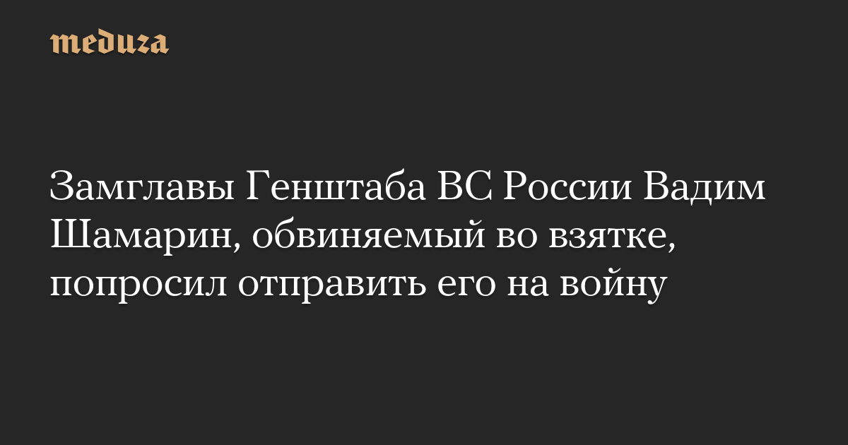 Замглавы Генштаба ВС России Вадим Шамарин, обвиняемый во взятке, попросил отправить его на войну