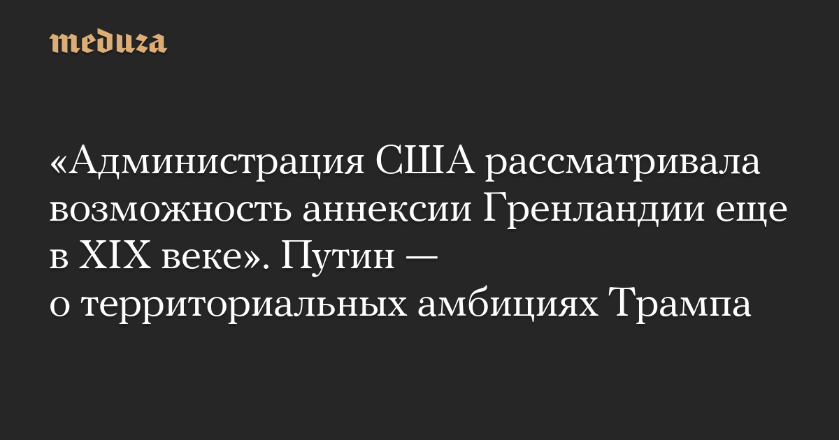 «Администрация США рассматривала возможность аннексии Гренландии еще в XIX веке». Путин — о территориальных амбициях Трампа