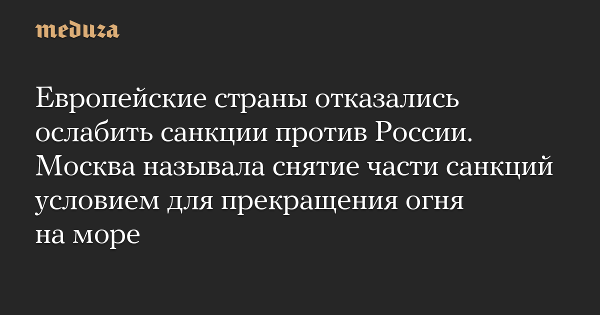 Европейские страны отказались ослабить санкции против России. Москва называла снятие части санкций условием для прекращения огня на море