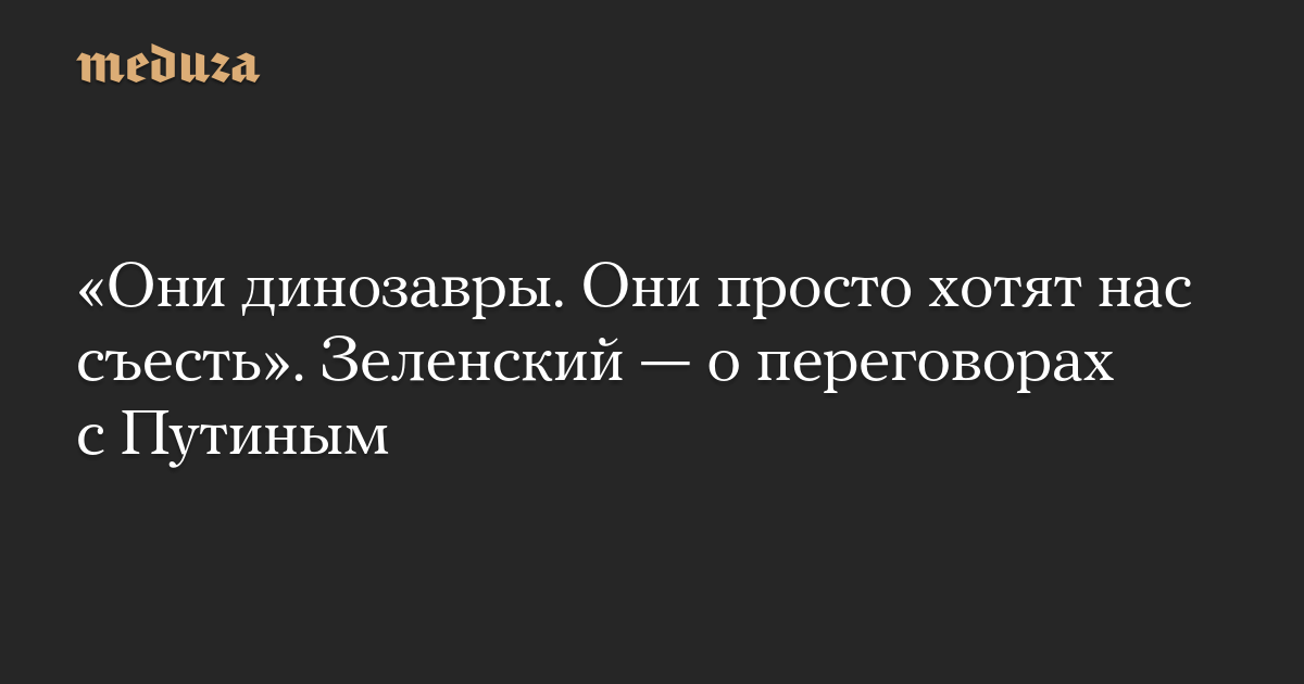 «Они динозавры. Они просто хотят нас съесть». Зеленский — о переговорах с Путиным