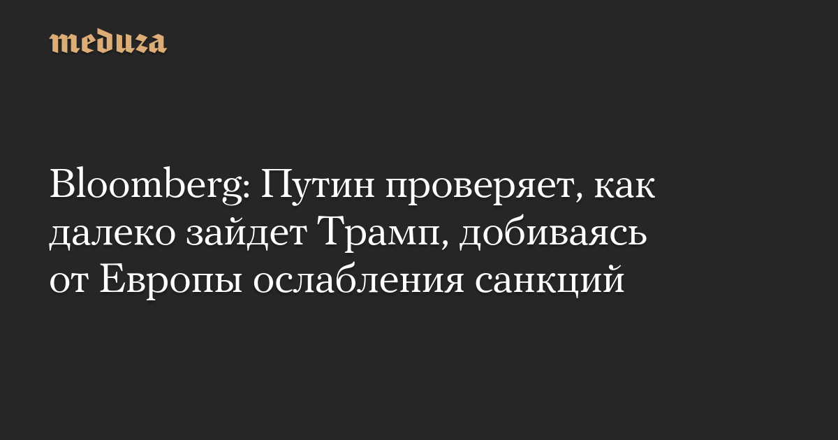 Bloomberg: Путин проверяет, как далеко зайдет Трамп, добиваясь от Европы ослабления санкций