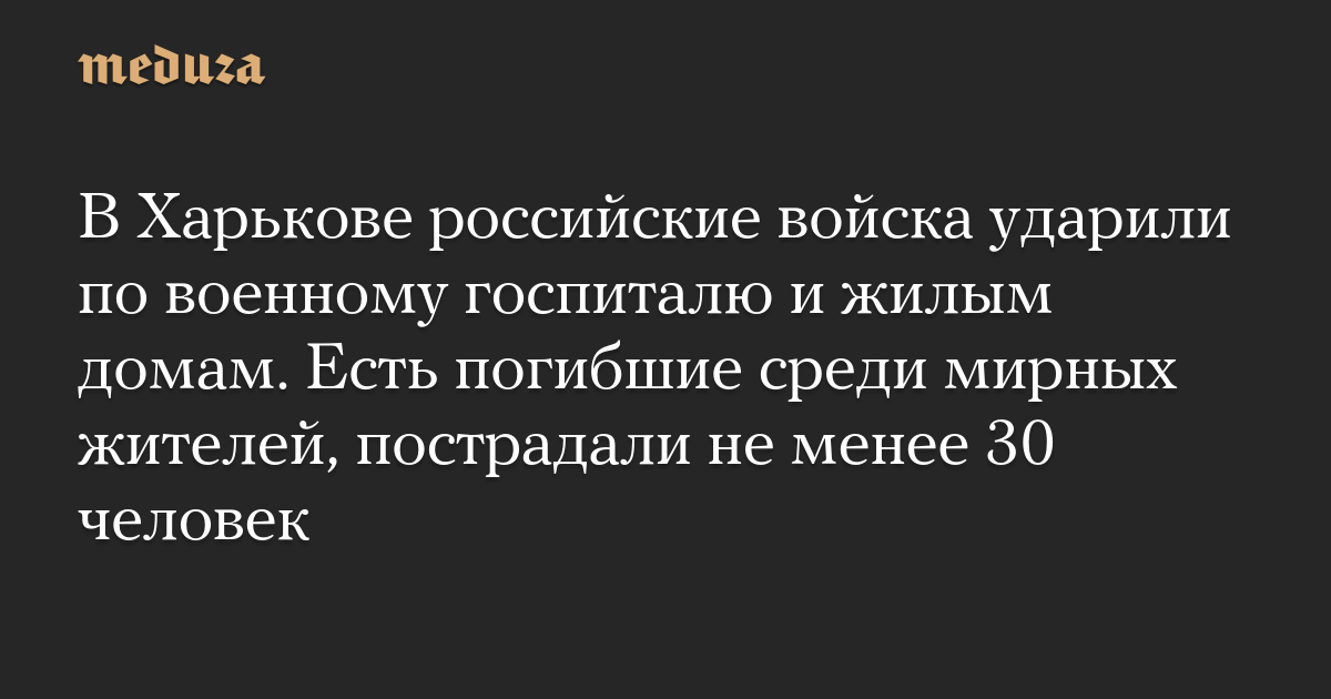 В Харькове российские войска ударили по военному госпиталю и жилым домам. Есть погибшие среди мирных жителей, пострадали не менее 30 человек