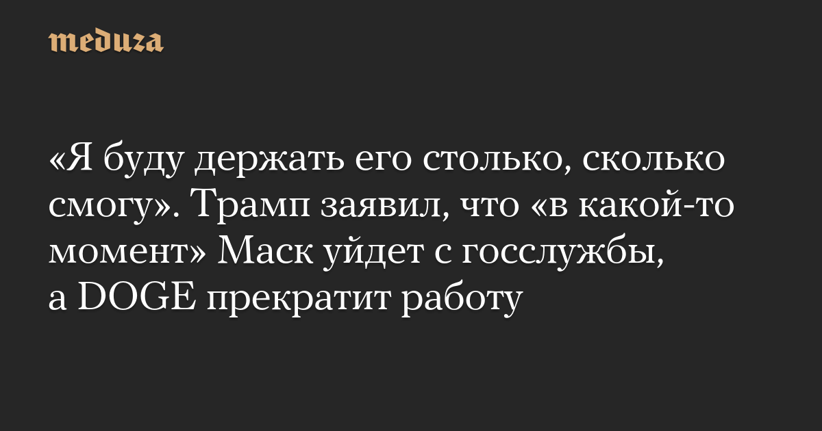 «Я буду держать его столько, сколько смогу». Трамп заявил, что «в какой-то момент» Маск уйдет с госслужбы, а DOGE прекратит работу