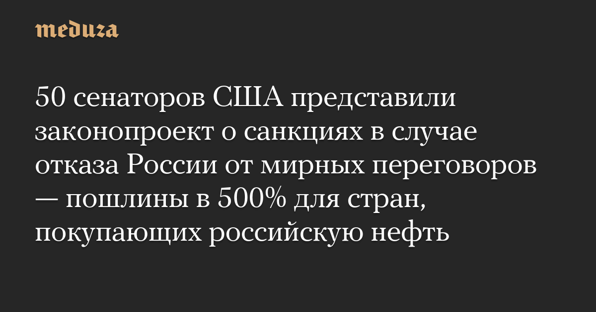 50 сенаторов США представили законопроект о санкциях в случае отказа России от мирных переговоров — пошлины в 500% для стран, покупающих российскую нефть