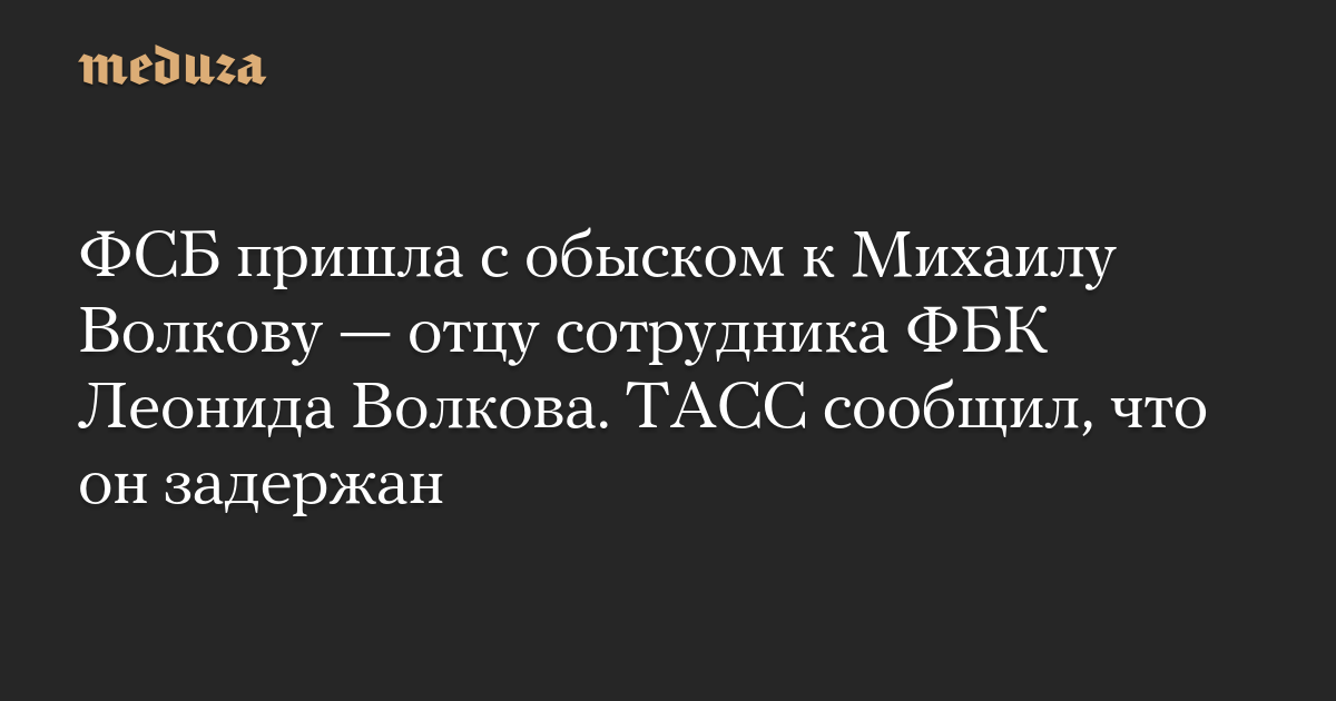 ФСБ пришла с обыском к Михаилу Волкову — отцу сотрудника ФБК Леонида Волкова. ТАСС сообщил, что он задержан